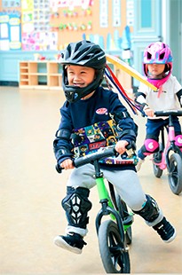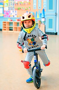 却是老师们觉得最最炫酷的:戴上头盔与护具,踏上“战车”,凝神开启“小马达”,朝着目标,“咻”地冲出起跑线,全力而为之!